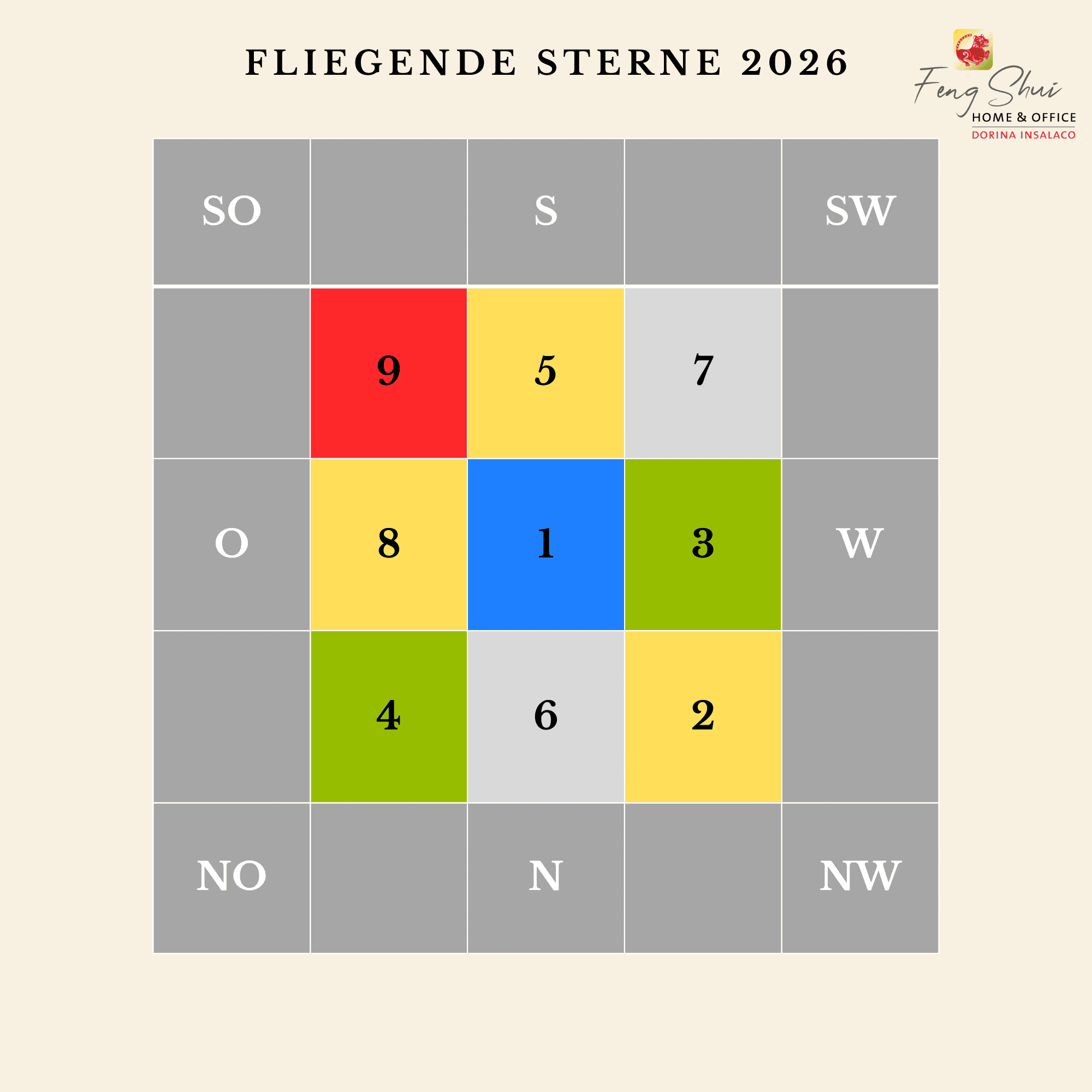 Die Fliegenden Sterne 2026, zusammen mit Tai Sui, Sui Po und Drei Tode, helfen dir, dein Zuhause oder Büro bewusst zu gestalten. Sie zeigen, wo du Energien aktivieren kannst, welche Bereiche Schutz brauchen und wie du Chancen für Gesundheit, Wohlstand, Liebe und persönliche Entwicklung nutzt.